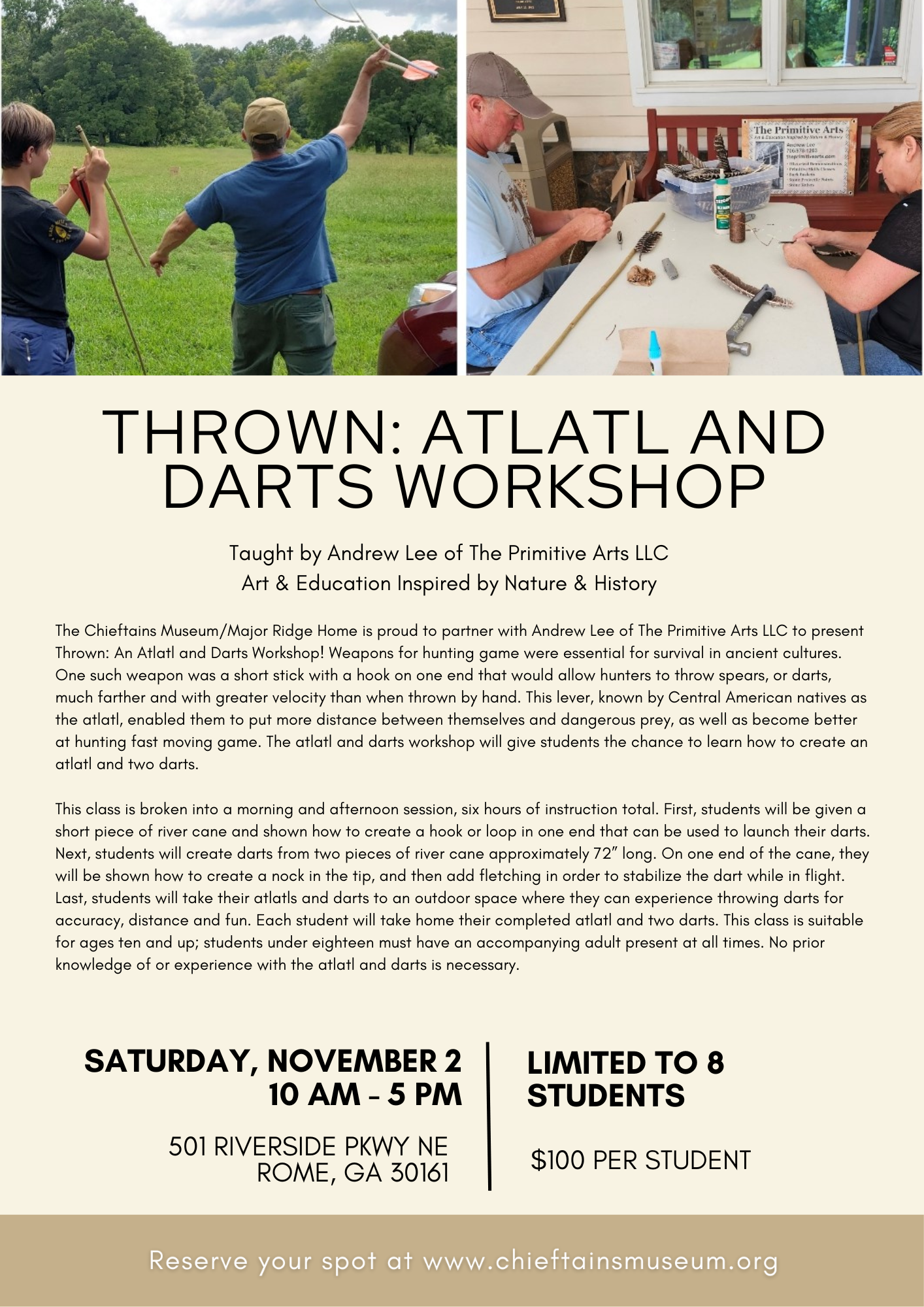 Members: Simply call the museum to reserve your spot or email us at manager@chieftainsmuseum.org!